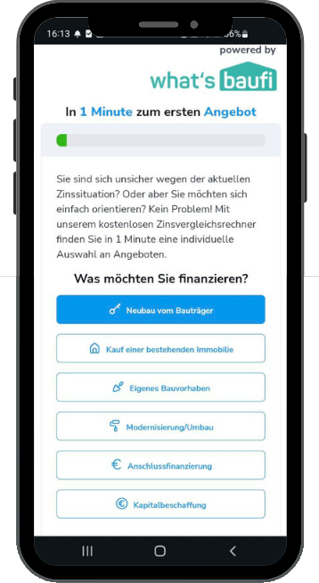 Einfache Antragsstrecke mit anschließender Berechnung von Angeboten und Überleitung zum Beratungsgespräch- auch als Leadgenerator für Ihre Website.