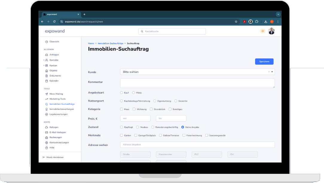 Positionieren Sie sich bereits früh bei Interessenten auf Immobiliensuche und seien Sie anschließend der erste Ansprechpartner beim Thema Finanzierung- mit unserem Suchauftragstool.
